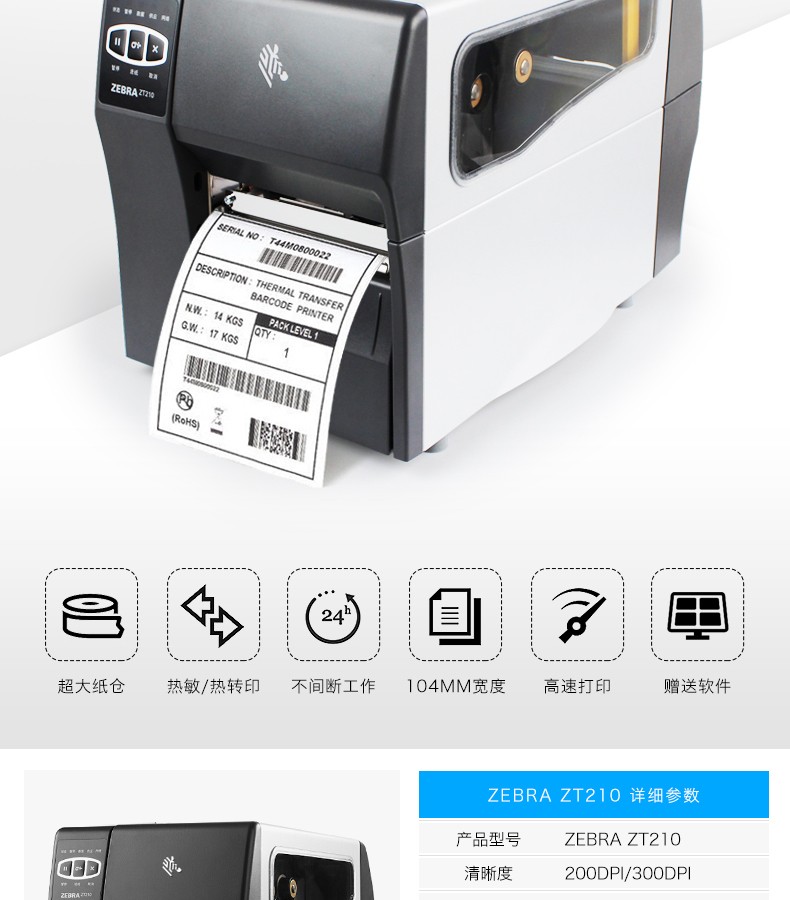 ZEBRA 斑马 ZT210/ZT230 工业级标签机条码打印机 二维码不干胶固定资产打印机 ZT210 203dpi