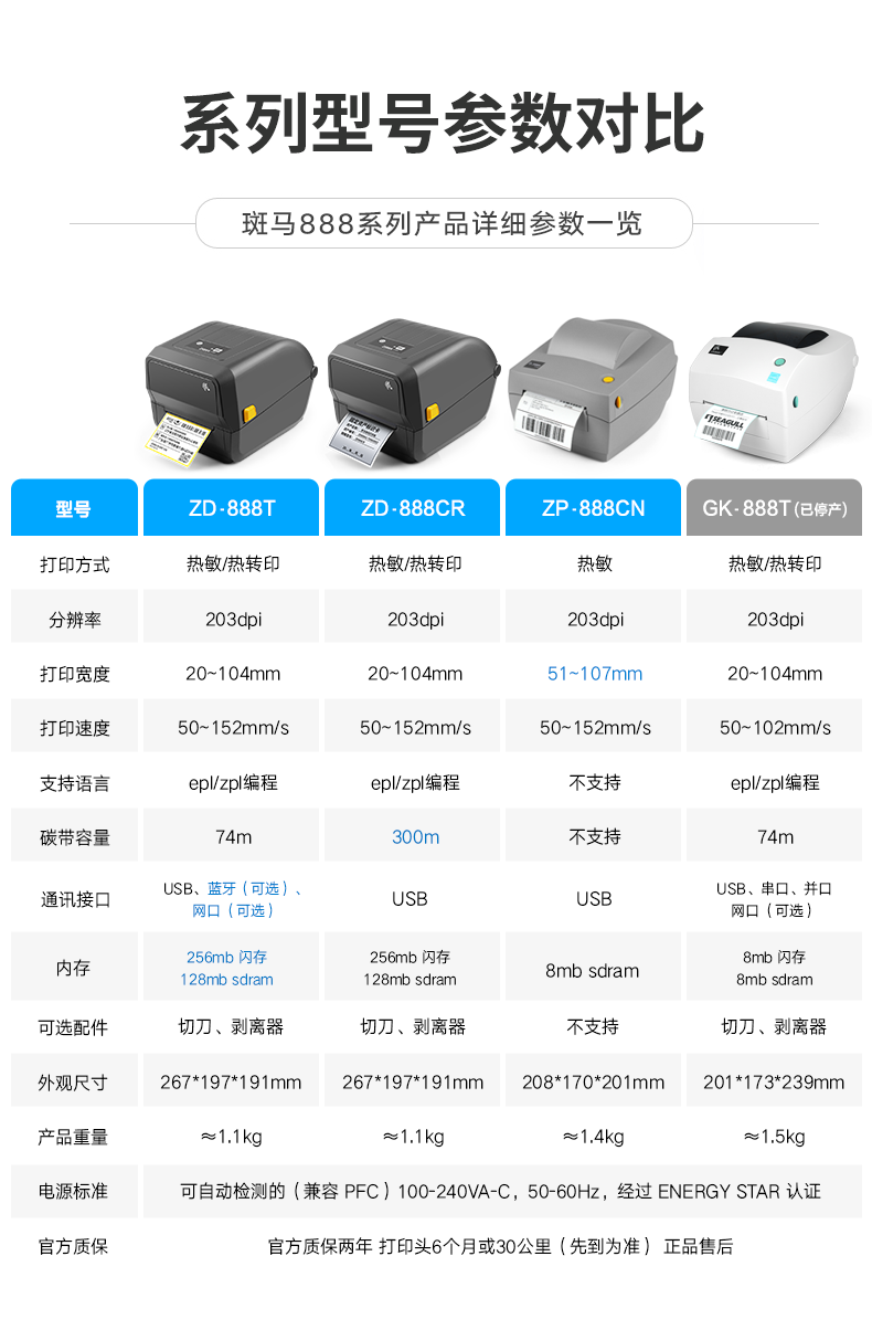 ZEBRA 斑马GT820升级款ZD888CR条码标签打印机不干胶固定资产标签机热敏快递电子面单 ZD888CR桌面打印机