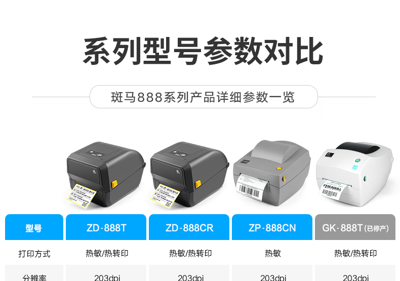 ZEBRA 斑马GT820升级款ZD888CR条码标签打印机不干胶固定资产标签机热敏快递电子面单 ZD888CR桌面打印机