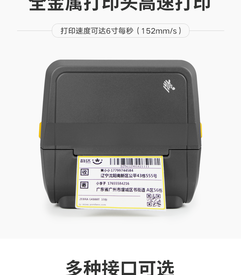 ZEBRA斑马GK888T条码标签不干胶打印机 斑马GT800顺丰电子面单打印 斑马GK888T