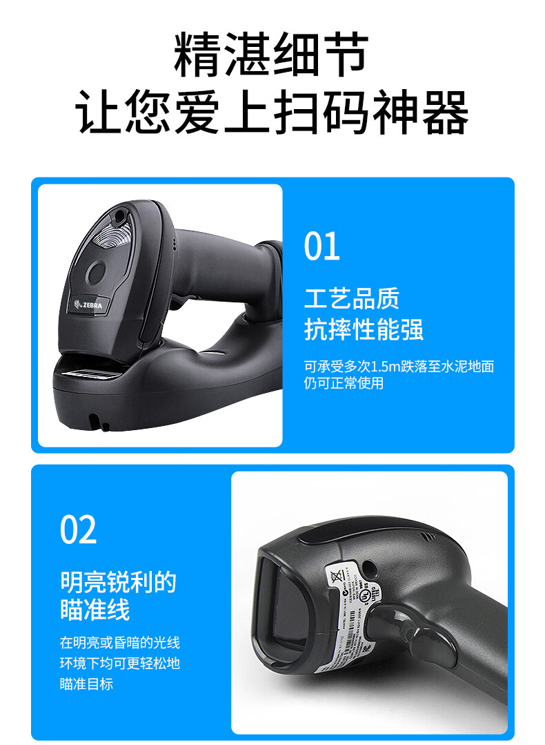 ZEBRA 斑马DS2208/2278一二维码条码枪条码枪扫码器 商超烟酒零售服装药店商品微信收银 DS2208-SR二维标配有线